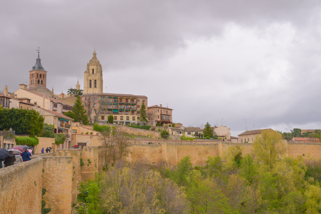 Segovia es una de las ciudades mejor emplazadas de la Península. El casco antiguo de la villa se alza en la cima de una atalaya rocosa rodeada por los ríos Eresma y Clamores. La vista del conjunto del monasterio del